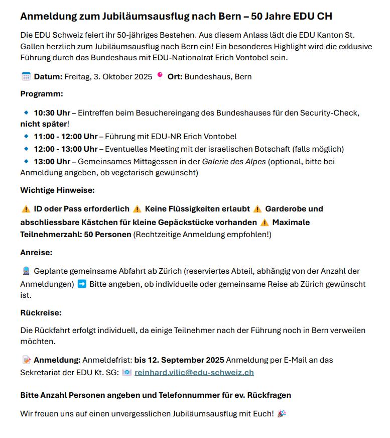 Präsidialmail September 2025 EDU Kanton St. Gallen